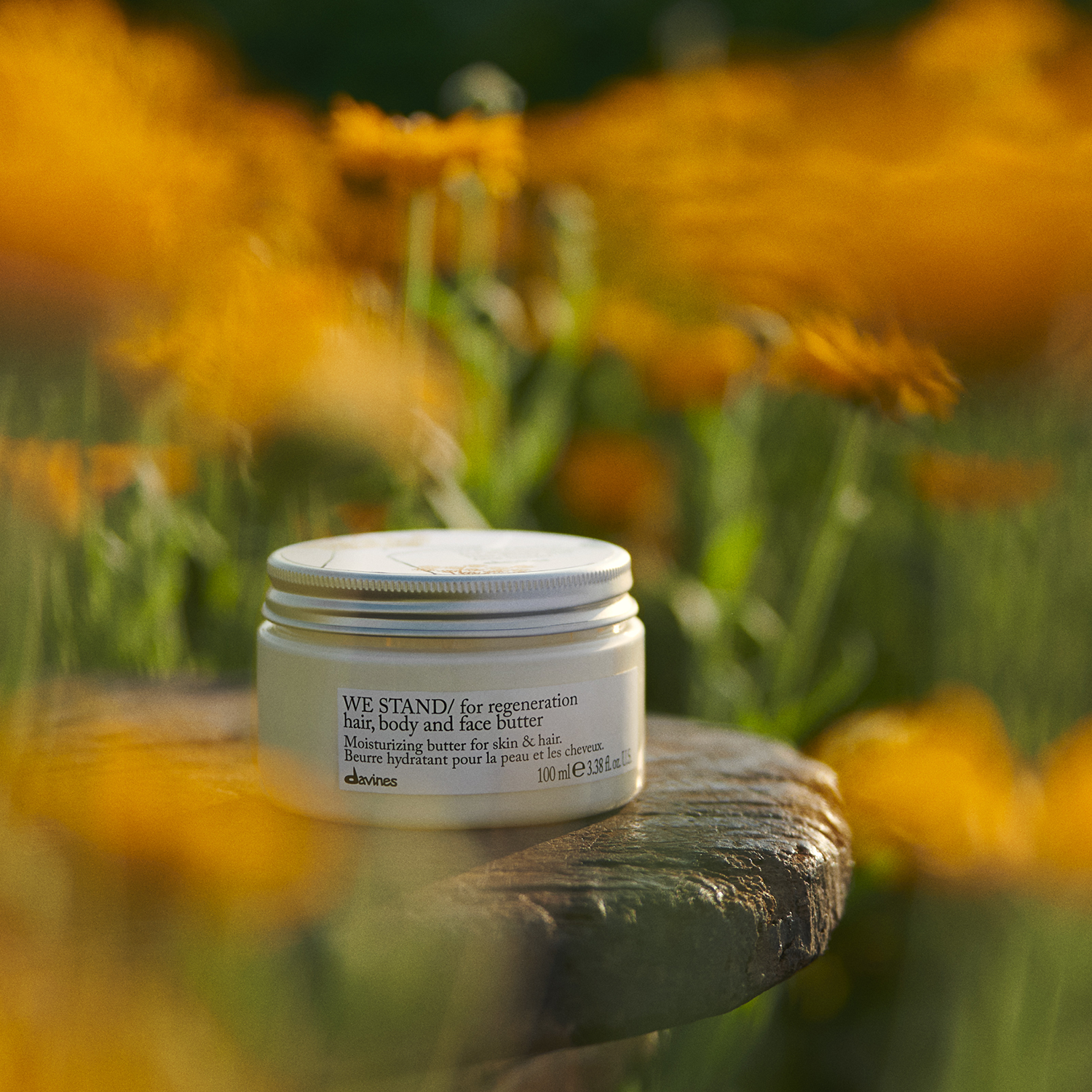 Your everyday beauty choices make a difference. Our limited-edition moisturizing butter for hair, face, and body is 93.25% natural and 85.5% biodegradable. It contains Calendula, our first Regenerative Organic Certified® activist® ingredient, grown at the European Regenerative Organic Center in Parma, Italy, to help combat climate change while supporting your daily beauty needs.
